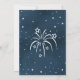 Vänner och familj i inbjudan för att fira Independence day med den 4 juli-inbjudan med fyrverkerier och stjärnor i rött, vitt och blått. Omvänd sida är en blå och vit stjärna himlar med fyrverkerier i mitten. Originalteckningen KL Lagrar.