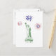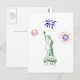 Frihetsgudinnan med rödvita och blå fyrverkerier i bakgrunden. En coola för sommaren och den 4 juli i party.