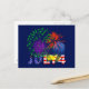 Fyrverkerier med färg och JULY4 som amerikansk flagga. Bara ett vackert vykort. Patriotisk Fjärde juli i Independence day ger och souvenirer åt vem som helst. Anpassade. Du kan ändra eller ta bort malltexten på baksidan. Lycklig Independence day!