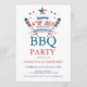 Fyrverkeri stjärnor och ränder grillfest inbjudan självständighetsdag firande. Vit bakgrund och anpassningsbar typografi i rött och blått.