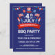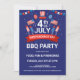 Fyrverkerier, stjärnor och strimmiga flaggor, ballonger, grillfest inbjudan, självständighetsdag firande.