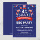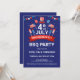 4 juli fyrverkerier och flaggor BQ-fest inbjudan