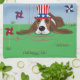 Den här designen har en Basset Hound-hund i ett patriotiskt landskap. Lycklig 4 juli!
