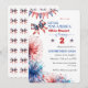 Vi presenterar vår fantastiska andra Independence day-födelsedag med en tjej, en chic-butik med en rackare, stjärnor och en coquette på framsidan med redigerbara babyduschdetaljer och en coquette-buk på baksidan av kortet. Med rött, vitt och blått med fyrverkeripjäser och en bildtext som säger " lite miss America svänger 2" - grafik från den 4 juli med skript och snyggt calligraphy. Du kan redigera födelseåret och annan information.