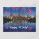 Ett vykort med roligt som spricker med mycket inslag i rött, vitt och blått Stars och stripes för att önska dina vänner och familj en Lycklig 4 juli. Den blå bakgrunden kan ändras till ett annat färg om du så önskar.