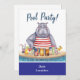 Denna roliga och festliga inbjudningskort har en glamourös flodhäst i ett bikini poolparty tema.
