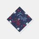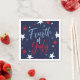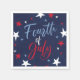 Den 4 juli har Rött vitt blått Fireworks Party Napkins fet kalligrafi och röda vita och blå stjärnor på en marin bakgrund.