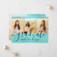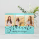 glädjen i en högskoleexamen eller högskoleexamen med dessa anpassningsbar 4-fotokollage tealblått och svart meddelande. Alla bilder och formuleringar är enkla att anpassa. (IMAGE PLACEMENT TIP: Ett enkelt sätt att centrera ett foto exakt som du vill är att flytta det till skörd innan du laddar upp det till Zazzle-webbplatsen.) Den här mallen är enkel att anpassa med valfri information, t.ex. information om inbjudningar till föräldrar, föräldrars namn, speciella arvoden, graderingstitel, favoritcitat, kontaktinformation för student, framtida utbildningsplaner eller ny befattning. Om det finns text som inte är önskad raderar du den. Utformningen har en teal-/turkoshögd blå bakgrund, svart pantpapp, handskriven kalligrafi i stil, modern minimalistisk typografi och fyra foton som du själv väljer, t.ex. äldre bilder eller bilder från startceremonin. Observera att bakgrunden är tryckt på färg, inte metallfolie.De här elegant studenten-annonseringskorten är ett trendig och chic för att er speciella firande med familj och vänner. Grattisar till student!