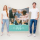 4 Photo Collage Monogram Namn Teal Fleecefilt