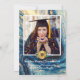 Modern 4-fotokollage Blue Marble Guld Swirl med solrosmeddelande studenten med ram över ditt fotoval. Baksidan har ett annat foto och mer information om din student. Blå marmor-snurrning i guld, studenten-meddelande, ny högskolegrad i student,4 fotokollage, klass 2022, högskola eller högskola, äldre foton, nya blommor i blommigten, solrosblomma i gult, sandig plagg.