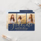 glädjen hos en högskoleexamen eller högskoleexamen och inbjudan familj och vänner att fira med dessa anpassningsbar 4-inbjudningar till fotokollage marinblått och guld. Alla bilder och formuleringar är enkla att anpassa. (IMAGE PLACEMENT TIP: Ett enkelt sätt att centrera ett foto exakt som du vill är att flytta det till skörd innan du laddar upp det till Zazzle-webbplatsen.) Den här mallen är formaterad för en studentfest, men kan enkelt anpassas som ett öppet inbjudan eller ett meddelandekort. Ändra helt enkelt texten så att den innehåller valfri information, t.ex. föräldrars namn, speciella arvoden, graderingstitel, favoritcitat, framtida student-planer eller nya adress. Om det finns text som inte är önskad raderar du den. Utformningen har en mörk blått bakgrund, ett faux foil mortar board-lock, handskriven stil-manusgrafi, modern minimalistisk typografi och fyra foton som du själv väljer, t.ex. äldre bilder eller bilder från startceremonin. Observera att guld är tryckt på färg, inte metallfolie. Inbjudningskortet studenten i elegant är ett trendig och en chic för att börja speciella firande. Grattisar till student!