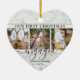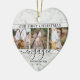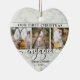 Fira förlovningens glatta första helgdag med en anpassningsbar hjärtformad 4 fotokollage "Vår första julhelg" faux marble ceramic ornament. All text och bilder på den här mallen är enkla att anpassa. (IMAGE PLACEMENT TIP: Ett enkelt sätt att centrera ett foto exakt som du vill är att flytta det till skörd innan du laddar upp det till Zazzle-webbplatsen.) Som en idé kan skripttypografin läsa "Tillsammans" eller "Gift". Utformningen har en snyggt svart och vit faux marble gräns, handskriven kalligrafi för stil, parets namn & år och fyra bilder efter ditt val. Den här unika bröllop-keepsaken ger en elegant vid dekorationer i Julafton.