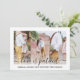 Om oväntade omständigheter har lett till att din speciella dag har skjutits upp eller ställts in ska du informera familj och vänner om förändringen av planerna med denna elegant "kärlek är patient" bröllop spara om det nya datumet. Bilder och all text är enkla att anpassa. (IMAGE PLACEMENT TIP: Ett enkelt sätt att centrera ett foto exakt som du vill är att flytta det till skörd innan du laddar upp det till Zazzle-webbplatsen.) Utformningen har en vit gräns, handskriven kalligrafi med stil-skript, modern minimalistisk typografi och 4 bilder, var och en på framsidan och baksidan. Det här förlovningen-meddelandekortet är ett chic- och snyggt sätt att informera gästerna i bröllop om er kommande speciella dag i firande och inbjudan för att spara ert nya omschemalagda datum.