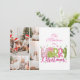 4 Photo Pink Green Bow Tree Merry Christmas Julkort