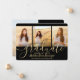glädjen i en högskoleexamen eller högskoleexamen med anpassningsbar 4-fotokollage svarta och guld-meddelanden. Alla bilder och formuleringar är enkla att anpassa. (IMAGE PLACEMENT TIP: Ett enkelt sätt att centrera ett foto exakt som du vill är att flytta det till skörd innan du laddar upp det till Zazzle-webbplatsen.) Den här mallen kan anpassas med valfri information, t.ex. information om inbjudan till deltagare, föräldrars namn, speciella arvoden, graderingstitel, favoritcitat, kontaktinformation för student, framtida utbildningsplaner eller ny befattning. Utformningen har en svart bakgrund, ett faux foil mortar board-lock, handskriven stil-manusgrafi, modern minimalistisk typografi och fyra foton som du själv väljer, t.ex. äldre bilder eller bilder från startceremonin. Observera att guld är tryckt på färg, inte metallfolie. De här studenten-annonskorten i elegant är ett trendig och en chic för att din speciella firande med familj och vänner. Grattisar till student!