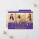 glädjen i en högskoleexamen eller högskoleexamen med dessa anpassningsbar 4-meddelanden om lila och guld. Alla bilder och formuleringar är enkla att anpassa. (IMAGE PLACEMENT TIP: Ett enkelt sätt att centrera ett foto exakt som du vill är att flytta det till skörd innan du laddar upp det till Zazzle-webbplatsen.) Den här mallen kan anpassas med valfri information, t.ex. information om inbjudan till deltagare, föräldrars namn, speciella arvoden, graderingstitel, favoritcitat, kontaktinformation för student, framtida utbildningsplaner eller ny befattning. Utformningen har en lila bakgrund, ett faux foil mortar board-lock, handskriven stil-manusgrafi, modern minimalistisk typografi och fyra foton som du själv väljer, t.ex. äldre bilder eller bilder från startceremonin. Observera att guld är tryckt på färg, inte metallfolie. De här studenten-annonskorten i elegant är ett trendig och en chic för att din speciella firande med familj och vänner. Grattisar till student!