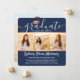 glädjen i en högskoleexamen eller högskoleexamen med anpassningsbar 4 fotokollage - fyrkantsmeddelanden om marin blått, vitt och faux koppar. Alla bilder och formuleringar är enkla att anpassa. (IMAGE PLACEMENT TIP: Ett enkelt sätt att centrera ett foto exakt som du vill är att flytta det till skörd innan du laddar upp det till Zazzle-webbplatsen.) Den här mallen kan anpassas med valfri information, t.ex. information om inbjudan till deltagare, föräldrars namn, speciella arvoden, graderingstitel, favoritcitat, kontaktinformation för student, framtida utbildningsplaner eller ny befattning. Utformningen har en mörk blått bakgrund, ett faux foil mortar board-lock, handskriven stil-manusgrafi, modern minimalistisk typografi och fyra foton som du själv väljer, t.ex. äldre bilder eller bilder från startceremonin. Observera att koppar är tryckt på färg, inte metallfolie. De här studenten-annonskorten i elegant är ett trendig och en chic för att din speciella firande med familj och vänner. Grattisar till student!