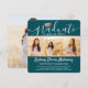 glädjen i en högskoleexamen eller högskoleexamen med anpassningsbar 4 fotokollage teal, vit och faux kopparfyrkantsmeddelanden. Alla bilder och formuleringar är enkla att anpassa. (IMAGE PLACEMENT TIP: Ett enkelt sätt att centrera ett foto exakt som du vill är att flytta det till skörd innan du laddar upp det till Zazzle-webbplatsen.) Den här mallen kan anpassas med valfri information, t.ex. information om inbjudan till deltagare, föräldrars namn, speciella arvoden, graderingstitel, favoritcitat, kontaktinformation för student, framtida utbildningsplaner eller ny befattning. Utformningen har en blå grönt i ombre-bakgrund, ett faux foil-pantarraylock, handskriven stil-manusgrafi, modern minimalistisk typografi och fyra foton som du själv väljer, t.ex. äldre bilder eller bilder från startceremonin. Observera att koppar är tryckt på färg, inte metallfolie. De här studenten-annonskorten i elegant är ett trendig och en chic för att din speciella firande med familj och vänner. Grattisar till student!