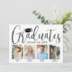 Det är en gemensam studentfest! Meddela att fyra student och inbjudan familj och vänner har lyckats fira med fotoinbjudningar till anpassningsbar av studentfester i snyggt. Alla bilder och formuleringar är enkla att anpassa, och färg kan anpassas med hjälp av Zazzle-konstruktionen verktyg. (IMAGE PLACEMENT TIP: Ett enkelt sätt att placera ett foto exakt på vilket sätt du vill är att lägga upp det i skörd innan du laddar upp det på Zazzles webbplats.) Den här mallen är ett annonskort på framsidan med gradpartsinbjudan på baksidan. Den moderna svarta och vita designen har handskriven kalligrafi av stil-skript med ett pantartonshölje, elegantens klassiska typografi och åtta foton som du själv väljer, t.ex. äldre bilder eller bilder från startceremonin. Inbjudningskortet i studenten är ett snyggt för att tillkännage en speciell dag i firande för betor från många, som syskon, bästa vänner, kusiner, lagkamrater osv. Grattisar till student!
