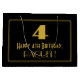 Den här vintagen ser ut som stil inspirerat 1920-talet/1930-talet med födelsedagspressdesignen har ett stort konsthände som ser inspirerat nummer "4", meddelandet "Lycklig 4e födelsedagen,", ett anpassade namn och ett gräns mönster som består av tunt linjer. Den har en bakgrund med svart färgad. En dylik presentpåse på födelsedagen kan användas för att slå ihop en gåva eller present som ges till någon som firar sin fjärde födelsedag. [~Z0000501]