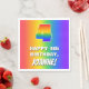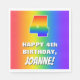 Den här glatta och livfulla pappra napkin-designen för födelsedagen har ett stort nummer "4" med ett färgstarkt regnbågsspektrum som inspirerar till gradienten mönster, tillsammans med meddelandet "LYCKLIG 4e födelsedagen," och en personlig som tar emot namn. Bakgrunden har också en roterande, flerfärgad regnbågsspektruminspirerad övertoning mönster. Pappra servetter som denna kan användas när man firar någons 4e födelsedagen. [~Z0000573]