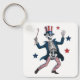 Bring some playful patriotic charm to your accessories with this dancing skeleton keychain. Featuring a lively skeleton dressed in red, white, and blue attire, this fun design captures a spirited celebration of American pride. With a cane raised high and a joyful dance pose, it’s the perfect mix of spooky and festive. Ideal for adding character to your keys, bags, or backpacks, this keychain makes a great gift for anyone who loves quirky Americana style or unique skeleton art.
