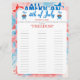 Fire up the fun at your Independence Day cookout with our BBQ-themed Word Game card! This engaging game features a retro-style BBQ grill illustration with sizzling burgers, creating the perfect backdrop for your 4th of July celebration.