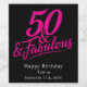50 and Fabulous Birthday Pink Script Custom Wine Label