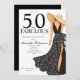 This 50 and fabulous birthday design features a chic illustrated woman in a flowing dress with modern typography. Perfect for milestone celebrations, this black polka dot birthday style feels elegant, confident, and fun for a stylish 50th celebration.