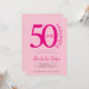 50 and Fabulous script minimal blush pink, hot pink, and black modern 50th birthday invitation, fully customizable for your fiftieth birthday celebration. The phrase “Fifty and Fabulous” features stylish, on-trend typography, while the name is displayed in an elegant script font. All text colors can be easily personalized using the edit menu.