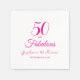 Fifty and Fabulous script minimal pink and 50th birthday party napkin that you can personalize with your name and date and send out for your fiftieth birthday party celebration. The words "50 and Fabulous" are set using popular script font typography. The text colors can be changed using the edit menu.