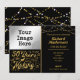 Lägg till födelsedagskalendern bild (ett aktuellt foto eller ett foto från deras ungdom) till den här svarta inbjudan och guld-inbjudan som meddelar att de är 50 år i skapar!