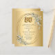 En falsk guldliknande bakgrund. En oval förgylld ram dekorerad med salvia grön grönska. Anpassa och lägg till dina namn, detaljer. Svart text.