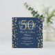 Elegant 50-års bröllopsfirande Guld Glitter Konfetti Marinblå inbjudan. Med guldglitterkonfetti.