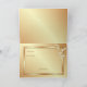 Grattis på 50-års bröllopsdagen med gyllene hjärta för att fira det speciella datumet av femtio år tillsammans. Vacker ton i ton gyllene randig bakgrund och bågeaccent. Anpassa framsidan och texten på insidan med din information.