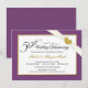 Skapa dina egna personliga 50-års bröllopsjubileums-inbjudningar -- Vacker plommonfärgad kant med tryckt vit band och gyllene ädelstens-bling-hjärta. Klassisk graverad typsnitt med fånig vintage-stil svulstig script-stil -- Elegant, prisvärd lyx och unikt anpassad för dig! Lägg bara till namn, datum och detaljer för din speciella milstolpe firande. ** OBS: Alla delar av denna design är en del av den tryckta bilden - bandet, juvelen och ramen är INTE upphöjda, präglade eller presenteras som riktiga dekorationer. Storlek anpassad för små inbjudningskort. Klicka på "Anpassa" för att ändra storlek, pappersalternativ eller typsnitt. Andra storlekar och stilar finns i galler