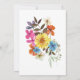 En enkel, modern vit ram låter vildblommorna titta fram för att ge den en avslappnad elegans. En gul solros förenas med lila, orange och blå vildblommor. Baksidan är precis lika vacker som framsidan med en stor bukett av samordnade sommarvildblommor.