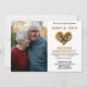 50-årsjubileum Fotoinbjudan designad med ett favoritfoto av paret och dekorerad med ett gyllene hjärta och gyllene accenter. Texten innehåller: Vänligen delta när vi firar, förnamnen på paret, 50-årsjubileum, datum, tid, plats och svarsinformation. För att anpassa, lägg bara in din bild i vår mall. Klicka på "ANPASSA" och justera bilden till vänster. Lägg sedan in din text i mallen och ersätt exempeltexten. Baksidan har en gyllene bakgrund. Det är snabbt och enkelt att skapa en bestående minnesinbjudan.