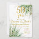 50 år förtjänar en firande! Denna inbjudan har vacker eukalyptus och guldbelysningar. All text är redigerbar (förutom siffran 50 och ordet år).
