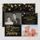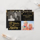 Bjud in dina gäster med denna 50-årsjubileumsinbjudan för bröllop i svart och guld med guldstjärnor med retrotypografi som säger 50 ÅR UNDER TILLVERKNING och låter dig inkludera deras bröllopsår som en del av designen och lägga till deras DÅ och NU foton. Festinbjudans detaljer finns på baksidan.