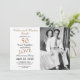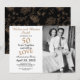 En vacker 50-års bröllopsjubileums fotofest inbjudan som du kan anpassa och skicka ut för din 50-åriga jubileumsfest firande med populär typografi. Ersätt provfotot med ditt eget. De gyllene och svarta textfärgerna kan ändras med hjälp av redigeringsmenyn. Ett svart och gyllene blommönster pryder baksidan av kortet. Andra färger och mönster finns tillgängliga.