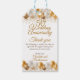 En glamourös presentetikett för tack till gästerna på 50-års bröllopsjubileum. Denna eleganta gyllene bröllopsjubileumsetikett med tack innehåller en festlig ballongdesign. Anpassa texten helt för att matcha din egen tillställning.