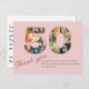 Ett underbart sätt att tacka de som var närvarande på en 50-årsfirande födelsedagsfest. Ett unikt klassiskt designkoncept med en rosa tack-kort. Använd vår mall för att skapa din egen anpassade fotokollage. Detta kärleksfulla födelsedagsfesttillbehör för den underbara festen har ett enkelt elegant chic-format med en vacker typografi. Designen fokuserar på dina 14 bilder i "50:an". De använda bilderna är fyrkantiga (i instagram-stil) med alla bilder ganska centrerade. Du kan använda landskaps- och porträttbilder som automatiskt beskärs. Byt plats på dina bilder till olika positioner och ha kul med att skapa din layout. Besök vår butik och bläddra bland vårt sortiment av 50-årspresenter med foto.