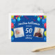 50-års födelsedagsfest inbjudan, 2 foton, ballonge vykort