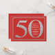50-års födelsedagsinbjudan. Röd och silver glitter födelsedagsfest inbjudan med röd bakgrund. Överraskningsfest. Vuxen födelsedag. Män eller kvinnor födelsedagsfest. För ytterligare anpassning, klicka på "Anpassa"-knappen och använd vårt designverktyg för att ändra denna mall.