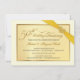 Skapa dina egna personliga 50-års bröllopsjubileums-inbjudningar -- Vacker elfenbensfärgad écru-kant runt en metallisk guldtonad ram med tryckt guldband och gyllene ädelstenshjärta. Klassisk graverad typografi med svulstig vintage-inspirerad svulstig skriptstil -- Elegant, prisvärd lyx och unikt anpassad för dig! Lägg bara till namn, datum och detaljer för din speciella milstolpe för jubileumsfirande. **OBS: Alla delar av denna design är en del av den tryckta bilden -- bandet, det juvelbesatta spännet och ramen är INTE upphöjda, präglade eller presenteras som riktiga dekorationer. Storlek anpassad för små inbjudningskort. Klicka på "Anpassa" för att ändra storlek, pappersalternativ eller