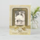 Denna kreativa 50-årsjubileumsinbjudan har en gammaldags look. Framsidans design har en ram omgiven av en realistisk bild av spets och framhävs med bilder av guldtonade rhinstenar. Ersätt provfotot med ditt eget foto med hjälp av den enkla, tillhandahållna mallen. Nedanför fotot finns en bild av en guldglittrig banderoll och allt är placerat mot en bakgrund som simulerar gammalt pergament och vintage-korrespondens. Anpassa framsidan med jubileumsåren (som visas) eller parets namn. Två textrader längst ned kan också anpassas. Baksidan har samma bild av gammaldags korrespondens. Ersätt provtexten med dina egna evenemangsuppgifter med hjälp av de tillhandahållna mallarna.