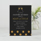 Guld och svart glitterkonfetti 50 års äktenskap Jubileumsfirande inbjudningar med handskriven typsnitt och champagneglas.