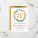 Denna Save the Date-kort för 50-års bröllopsdag har en delikat blomsterkrans gjord av vilda blommor, växter och fjärilar. Det kan enkelt anpassas med din speciella information om guldbröllop. Baksidan av inbjudan har din bröllopsdag datum i elegant vit text på gyllene bakgrund.