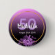 Knapp för 50-årsdagen med elegant och modern svart och rosa, lila övertoning, ombre-bakgrund. Med faux guld ram och ultraviolett och lila färgad vattenfärgade blommor. Mallar för namn, ålder och datum, vit och lila färgad brev. Perfekt som en keepy eller som en besparing av datumpåminnelsen till dina gäster.